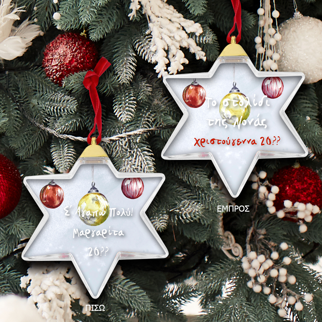 Αυτά τα Χριστούγεννα το σπίτι & το δένδρο μπορεί να έχει μοναδικά προσωποποιημένη στολίδια που θα ξεχωρίσουν & θα κρατήσουν για πάντα. Ενα διαφορετικό και ξεχωριστό Στολίδι Αστέρι Διάφανο για Δένδρο με Ευχές, που θα στολίζει το σπίτι του ΠΑππού & της Γιαγιάς όχι μόνο αυτές τις γιορτές αλλά και για πολλά ακόμα χρόνια.