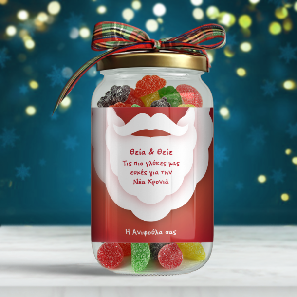 Δώρο χριστουγεννα για την θεία, θειο, Γιορτινό Βαζάκι καραμέλες με Αη Βασίλη, Προσωποποιημένο με Ευχές και Όνομα, είναι ένα δώρο για τις γιορτές που θα μείνει για πάντα στο ντουλάπι της κουζίνας και θα δημιουργεί κάθε φορά μοναδικές αναμνήσεις κάθε φορά που θα πίνει τον καφέ του ή το τσάι του!