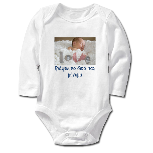 Μακρυμάνικο Φορμάκι με Φωτογραφία και δικό σας μήνυμα, είναι το δώρο που θα κάνει όλους στην οικογένεια μα χαμογελάσουν μόλις κάνει την εμφάνιση του το μωράκι σας.
