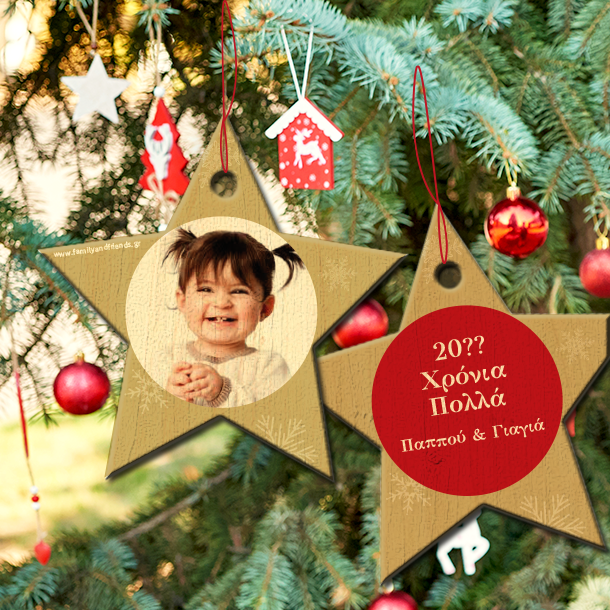 Αυτά τα χριστούγεννα διακοσμήστε το σπίτι σας με τα μοναδικά προσωποποιημενα χριστουγεννιατικα στολίδια που ξεχωρίζουν από όλα όσα έχετε αγοράσει τα προηγούμενα χρόνια. Το Χριστουγεννιάτικο Στολίδι για το δένδρο Ξύλινο Αστέρι Στολίδι με Φωτογραφία και Ευχές, για Δένδρο, Δώρο για τα Χριστούγεννα στον παππού και την γιαγια, είναι το διαφορετικό χριστουγεννιάτικο δώρο που θα κάνετε και θα στολίζει το σπίτι τους όχι μόνο αυτές τις γιορτές αλλά και για πολλά ακόμα χρόνια, δημιουργώντας μοναδικές αναμνήσεις για τα πρώτα χριστούγεννα του μωρού σας κάθε φορά που θα το βλέπουν. Ξύλινο Αστέρι Στολίδι με Φωτογραφία και Ευχές, για Δένδρο, Δώρο χριστουγεννιατικο για την νονα, νονο είναι το ξεχωριστό χριστουγεννιάτικο δώρο που θα κάνετε στον σε κάθε φίλο ή συγγενή και θα τους εντυπωσιάσει γιατί ξεχωρίζει από όλα τα άλλα και φτιάχνεται αποκλειστικά για αυτούς. Ξύλινο Αστέρι Στολίδι με Φωτογραφία και Ευχές, για Δένδρο, Δώρο για τα Χριστούγεννα προσωποποιημενα με ονοματα και έτος είναι το δώρο που θα κάνετε στην νονά ή την θεία και θα μείνει για πάντα θυμίζοντας την στιγμή που το προσφέρατε. Στολίδι για το δένδρο Ξύλινο Στολίδι με Φωτογραφία και Ευχές, Δώρο για τα Χριστούγεννα για τη Νονά με Ευχή και φωτογραφία ειναι ένα  ξεχωριστό και πρωτότυπο δώρο για κάθε οικογένεια. Τα προσωποποιημένα Χριστουγεννιάτικα Στολίδια με Ευχή είναι ένα ξεχωριστό χριστουγεννιάτικο δώρο και για τον δάσκαλο ή δασκάλα του παιδιού σας. Ξύλινο Στολίδι Αστέρι για το Χριστουγεννιάτικο δέντρο προσωποποιημένο με όνομα πρωτότυπο αναμνηστικό δωράκι για τον παππου και την γιαγιά για καλα χριστουγεννα και καλη χρονια. Στα Προσωποποιημένα δώρα με ή χωρίς Φωτογραφία, για την νονα ή τον νονο μπορείτε να αλλάξετε τα κείμενα όπως εσείς θέλετε ανεξάρτητα από την δική μας πρόταση. Ξύλινο Αστέρι Στολίδι με Φωτογραφία και Ευχές, για Δένδρο, Δώρο για τα Χριστούγεννα προσωποποιημένο με όνομα, Προσωποποιημένo με Ονόματα, πρωτοτυπα χειροποιητα χριστουγεννιατικα δωρα, Προσωποποιημένο Δώρο για τα χριστούγεννα με Ευχές, θα κρατηθεί σαν αναμνηστικό για πάντα από κάθε μαμα, μπμπα. Το Προσωποποιημένο χριστουγεννιατικο Δώρο για τις γιoρτές στην Θεία, Ξύλινο Αστέρι Στολίδι με Φωτογραφία και Ευχές, για Δένδρο, Δώρο για τα Χριστούγεννα με Ονόματα, για Χρόνια Πολλά και καλή χρονιά είναι το ξεχωριστό δώρο για κάθε φίλο ή συγγενή στις γιορτές, είναι ένα ξεχωριστό δώρο για την αγαπημένη σας θεία ή θείο αυτά τα Χριστούγεννα! Στολίδι με Φωτογραφία και Ευχές, Δώρο για τα Χριστούγεννα προσωποποιημένο με όνομα, Προσωποποιημένo με Ονόματα, έτος και το όνομά του, είναι ένα πρωτότυπο και οικονομικό δώρο χριστουγεννων που μπορείτε να κάνετε στισ γιορτές που θα εντυπωσιάσει κάθε συγγενή, για να του δείξετε ότι τον θυμηθήκατε και πόσο πολύ τον αγαπάτε! Στο familyandfriends.gr θα βρείτε μοναδικά προσωποποιημένα δώρα γενεθλιων, γενεθλια και δώρα γιορτών προσωποποιημένα για αγόρια και κορίτσια, ανδρες, μαμα, μπαμπα, παππου, θειο, θεια, νονα, νονο και γυναίκες και καθε φιλο η συγγενή. Ξύλινο Στολίδι Αστέρι για το Χριστουγεννιάτικο δέντρο προσωποποιημένο με όνομα, Ονόματα, είναι ένα δώρο για τα χριστουγεννα που θα μείνει για πάντα και θα δημιουργεί κάθε φορά μοναδικές αναμνήσεις στην αγαπημένη σας θεια, γιαγια, νονα, μαμα. ΠΕΡΙΓΡΑΦΗ ΠΡΟΙΟΝΤΟΣ Πρωτότυπo Ξύλινo Αστέρι Χριστουγεννιατικο στολίδι, για το Δέντρο και το σπίτι 4 