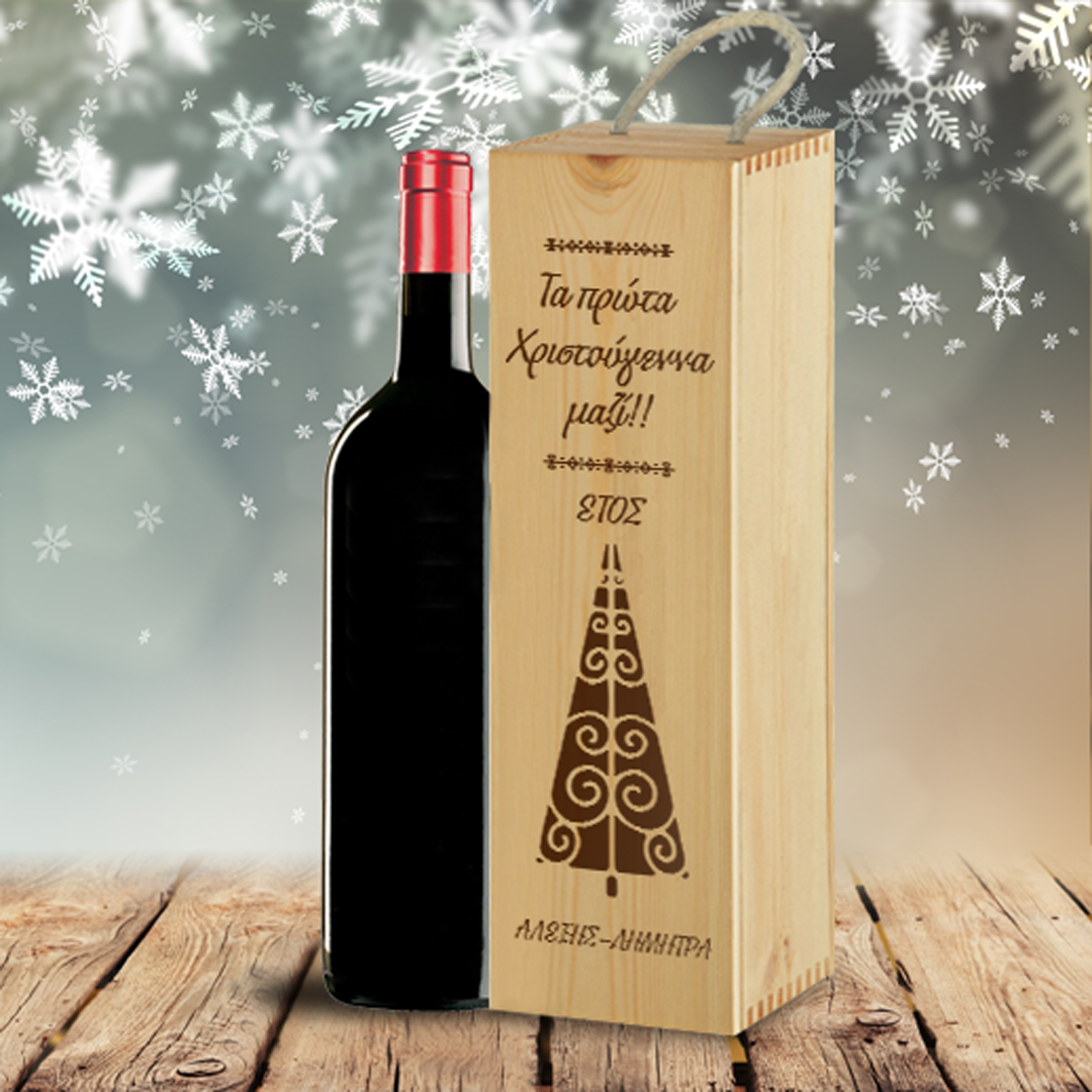 Ξύλινο Κουτί για Κρασί Προσωποποιημένο με Χριστουγεννιάτικο Δέντρο